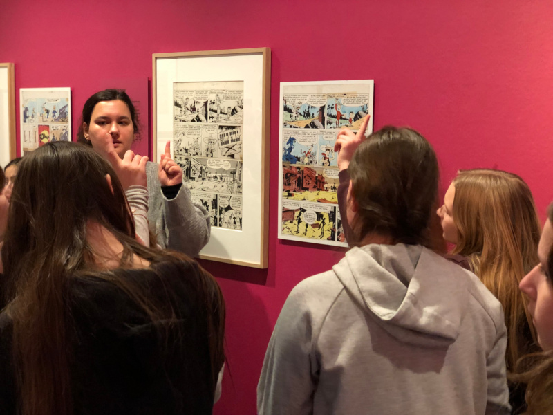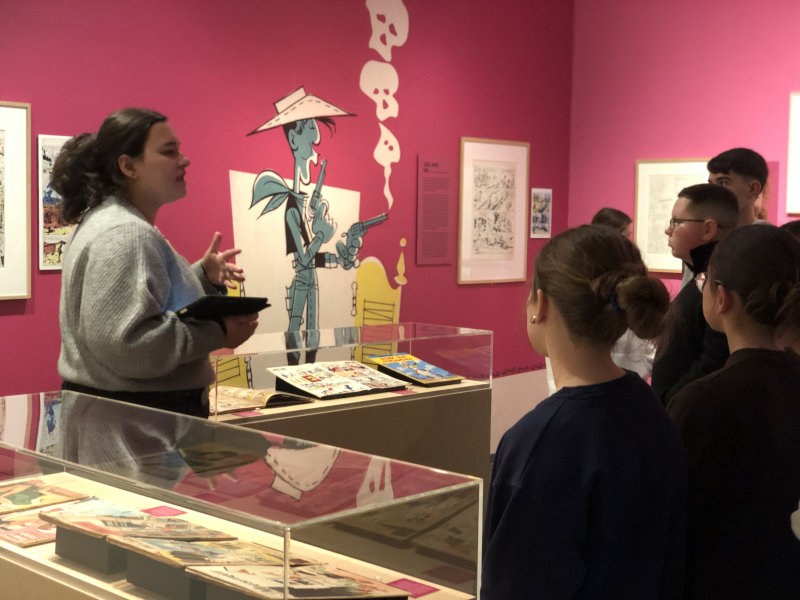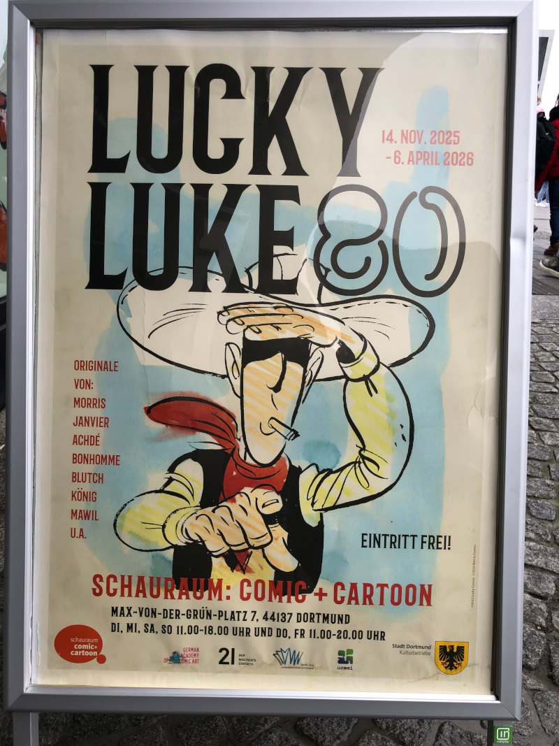 Am 28. Januar besuchte die Klasse 6a zusammen mit Frau Zimmermann und Frau Müller im Rahmen einer Unterrichtsreihe zum Thema Comic im Fach Kunst die spannende Lucky Luke-Ausstellung im „Schauraum: comic + cartoon“ in Dortmund. Die Ausstellung „Lucky Luke 80 – Das Artwork“ bot faszinierende Einblicke in die Welt des wohl bekanntesten Comic-Cowboys Europas. Die Schülerinnen und Schüler durften originale Zeichnungen, Skizzen und Comicseiten bewundern, die teilweise vorher noch nie öffentlich gezeigt wurden – darunter Raritäten aus den 1950er und 1960er Jahren.