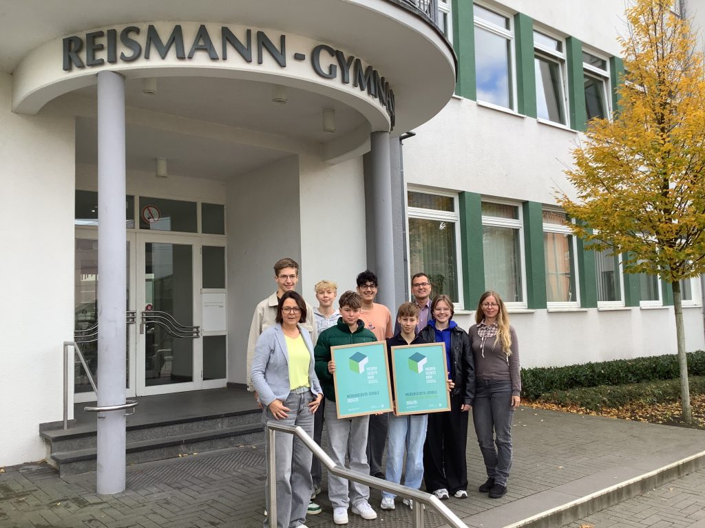 Das Reismann-Gymnasium hat zum zweiten Mal vom Ministerium für Schule und Bildung des Landes Nordrhein-Westfalen und der Landesanstalt für Medien NRW als eine von 152 Schulen die Auszeichnung „Medienscouts-Schule 2025“ erhalten. Dieses Abzeichen erhalten Schulen, die sich in besonderem Maße für das Angebot Medienscouts NRW engagieren. Zusätzlich wurde die Schule mit einem Zusatzabzeichen für ihren besonderen Einsatz gegen Desinformation ausgezeichnet. Dieses Sonderabzeichen mit dem Namen „Medienscouts-Schule gegen Desinformation“ wurde in diesem Jahr an 54 Schulen in NRW vergeben.
