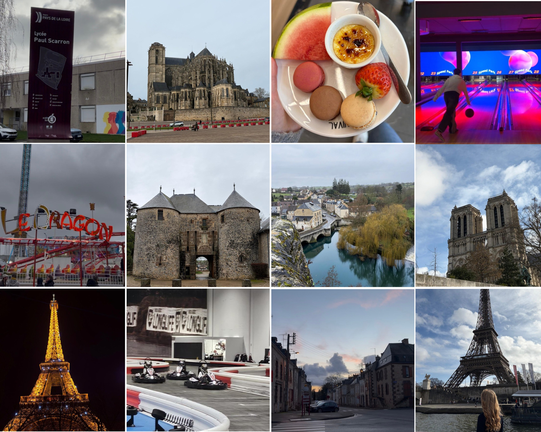 Samstag wurde sie zu einer Familienfeier ihrer Gastfamilie mitgenommen. Dort durfte sie die französische Kultur nochmal genauer kennenlernen, Essen, Gastfreundlichkeit und das typisch französische Miteinander. Am Freitagnachmittag war Liv in einem kleinen Café in Fresnay-sur-Sarthe und verbrachte den restlichen Abend ruhig mit ihrer Gastfamilie, bevor es am nächsten Morgen früh nach Paris ging. Am Samstag war sie mit ihrer Austauschschülerin und ihren Gasteltern in der französischen Hauptstadt Paris. Um die wichtigsten Sehenswürdigkeiten an einem Tag zu sehen, machten sie zuerst eine Bootsfahrt über die Seine. Außerdem besuchten sie die Galeries Lafayette mit ihrer beeindruckenden Glaskuppel, das Wachsfigurenmuseum Grévin, die Basilika Sacré-Cœur, die für ihr faszinierendes Mosaik bekannt ist, sowie das Künstlerviertel Montmartre. Als es abends dunkel wurde, ging es zum leuchtenden Eifelturm und bei Nacht noch zum Arc de Triomphe und auf die Champs-Élysées.