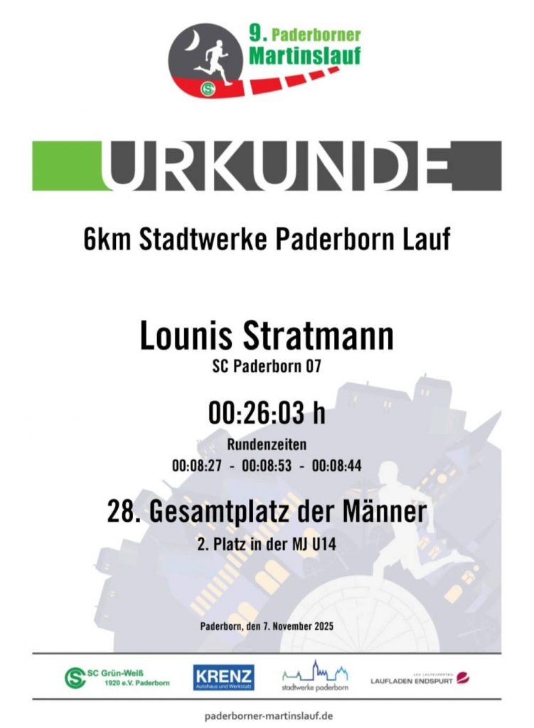 Am 07.11. fand der alljährliche Paderborner Martinslauf bei vorweihnachtlicher Atmosphäre durch die Paderborner Innenstadt statt. Vor allem Phil und Lounis aus der 5b konnten hierbei besondere Erfolge vermelden und die 6km mit Top-Zeiten absolvieren. Großartig!