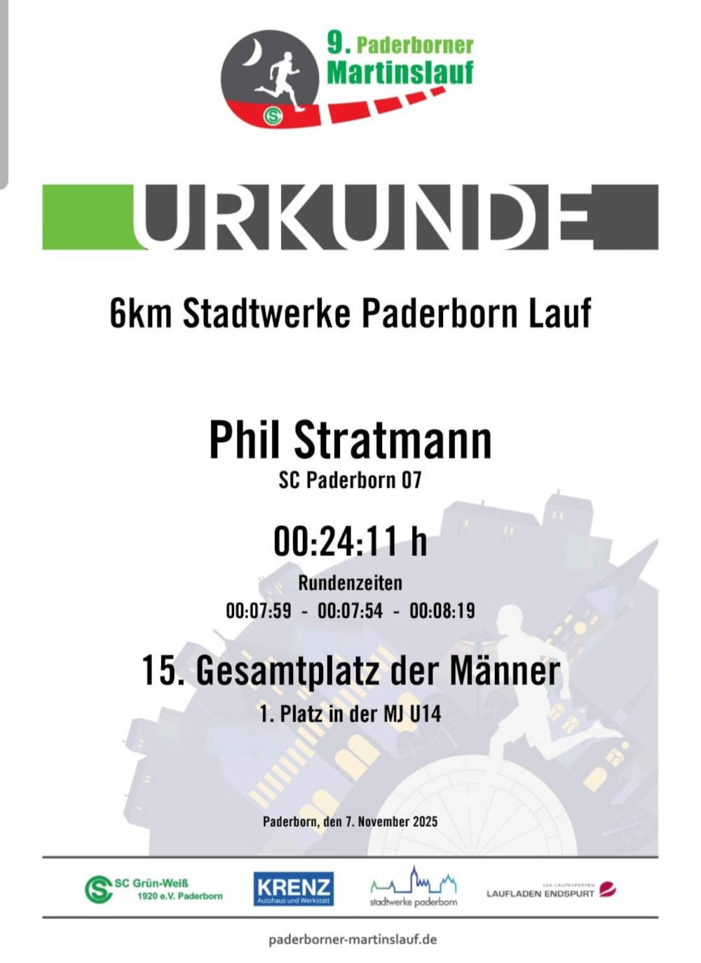 Am 07.11. fand der alljährliche Paderborner Martinslauf bei vorweihnachtlicher Atmosphäre durch die Paderborner Innenstadt statt. Vor allem Phil und Lounis aus der 5b konnten hierbei besondere Erfolge vermelden und die 6km mit Top-Zeiten absolvieren. Großartig!