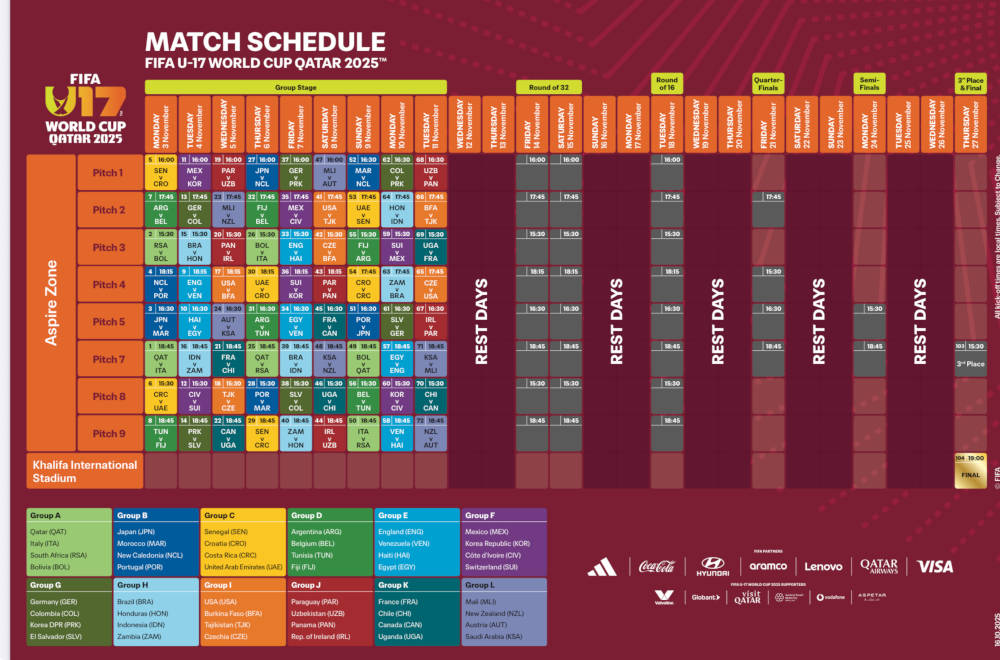 Zum Auftakt trifft die deutsche Auswahl am 4. November um 15:45 Uhr auf Kolumbien. Die weiteren Gruppenspiele gegen Nordkorea und El Salvador folgen am 7. November (14:00Uhr) sowie am 10. November (14:30Uhr).