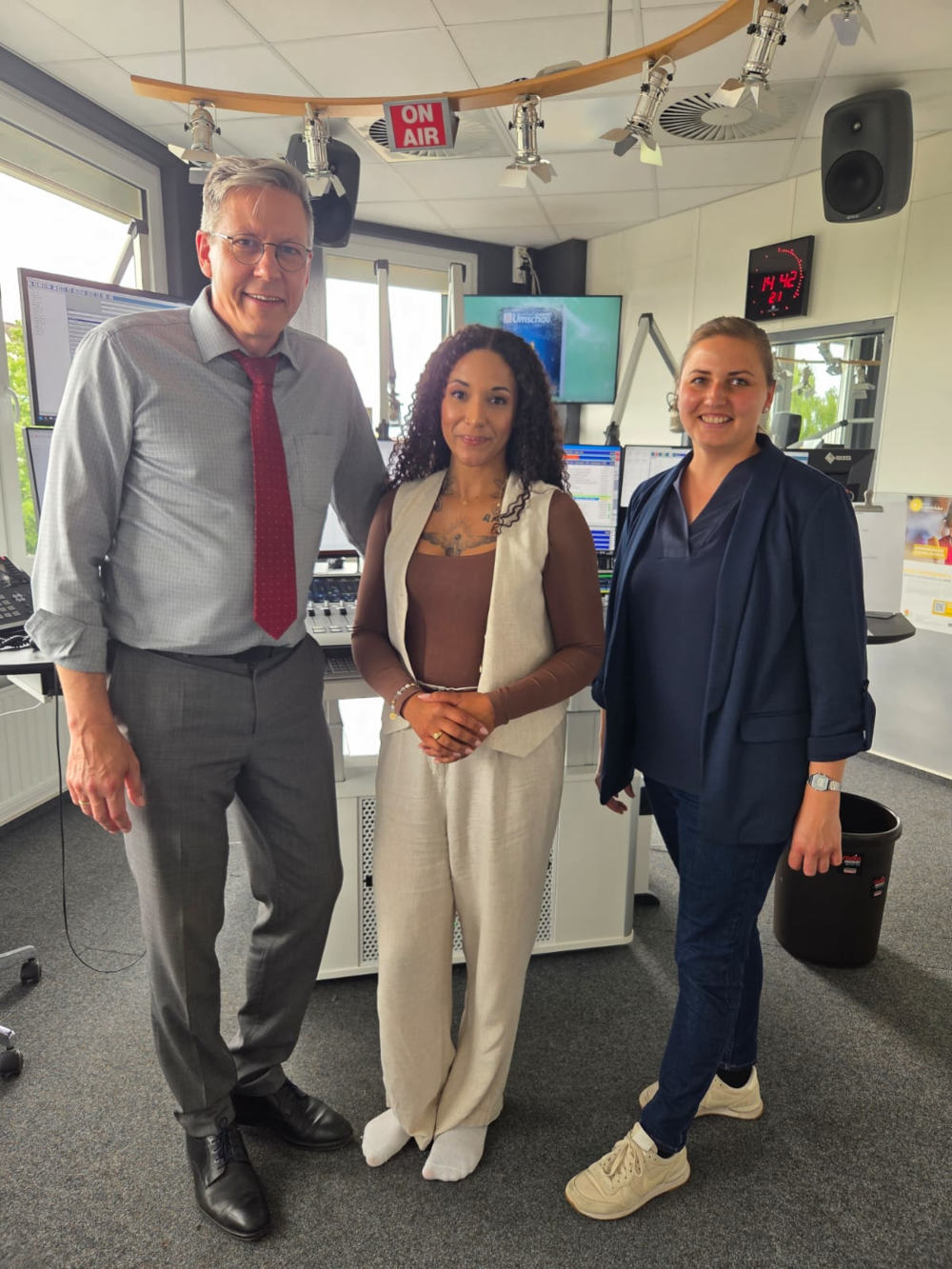 Von Seiten der Schule durften Herr Rojahn (Schulleitung) und Frau Katharina Martl (Sportkoordination) den Sender besuchen, um das Interview vor Ort zu führen. Dabei durfte ein spannender Einblick ins Innere des Senders, inklusive ein Besuch im Studio, nicht fehlen.