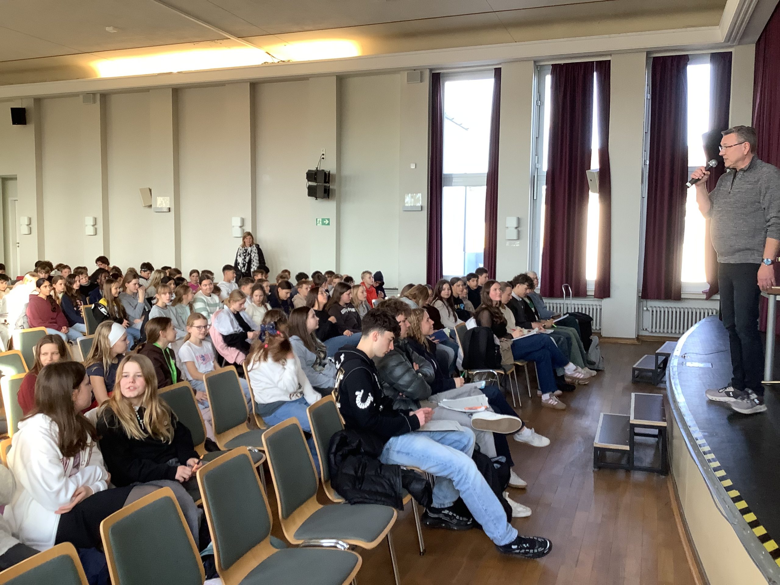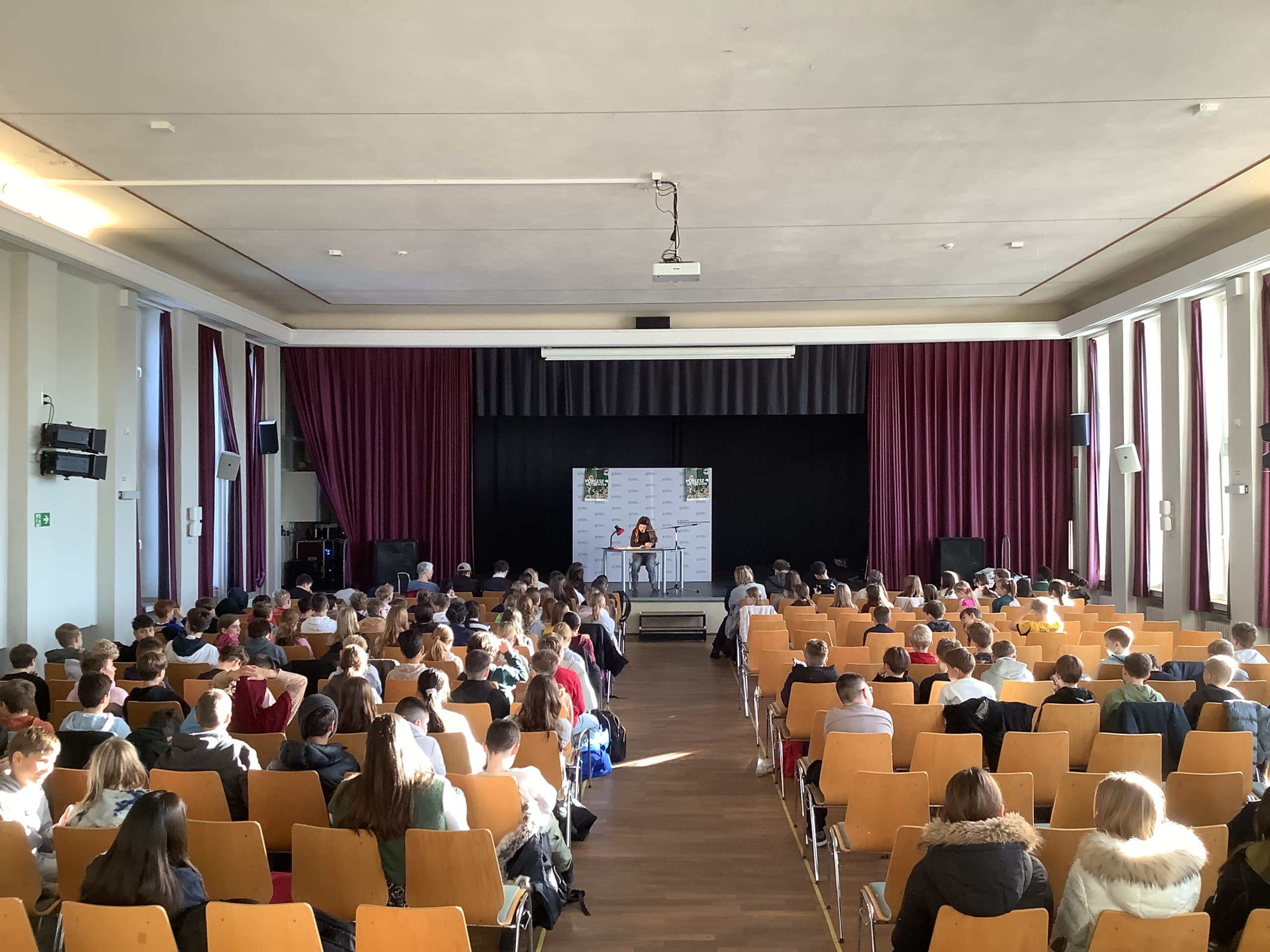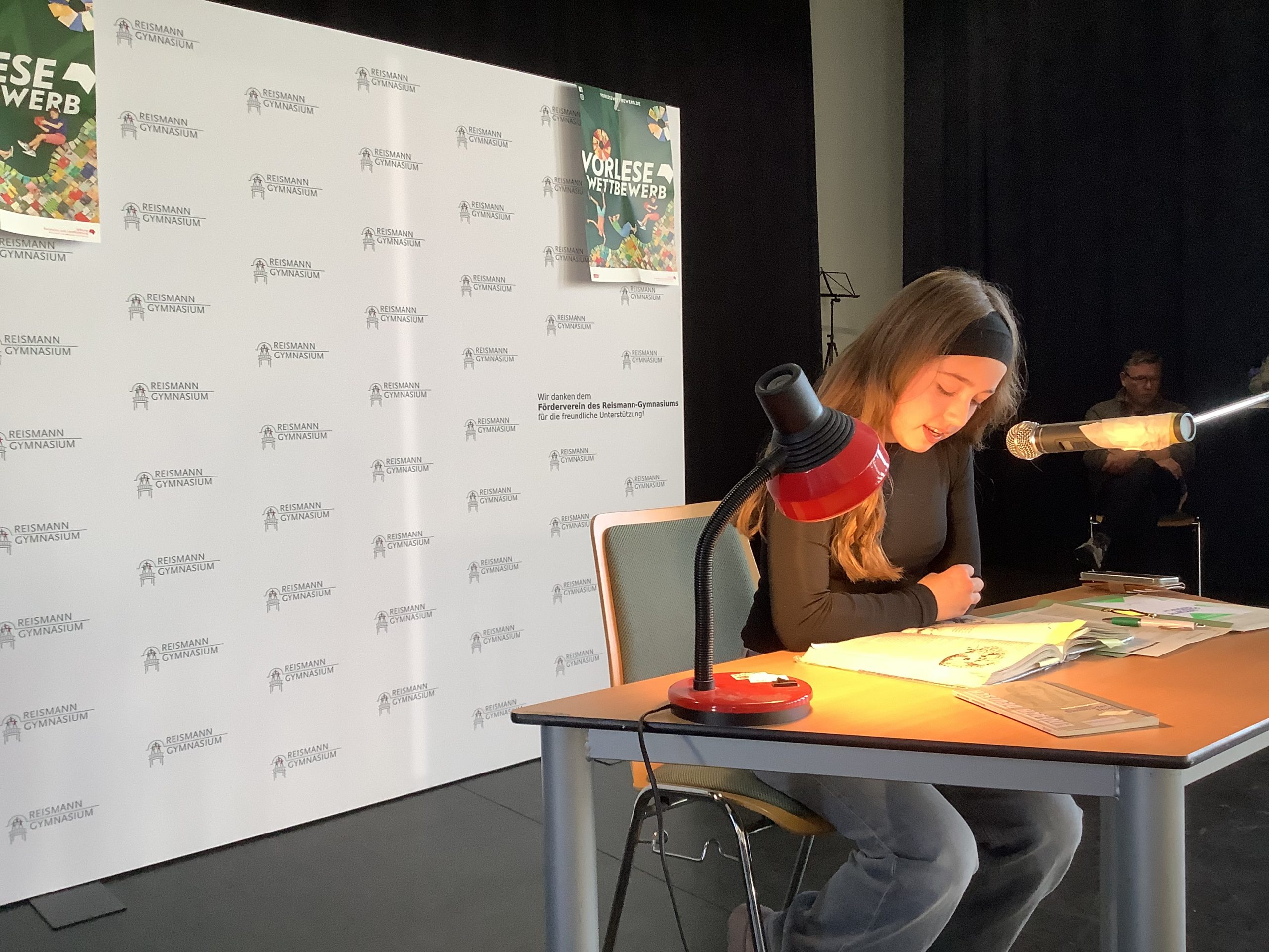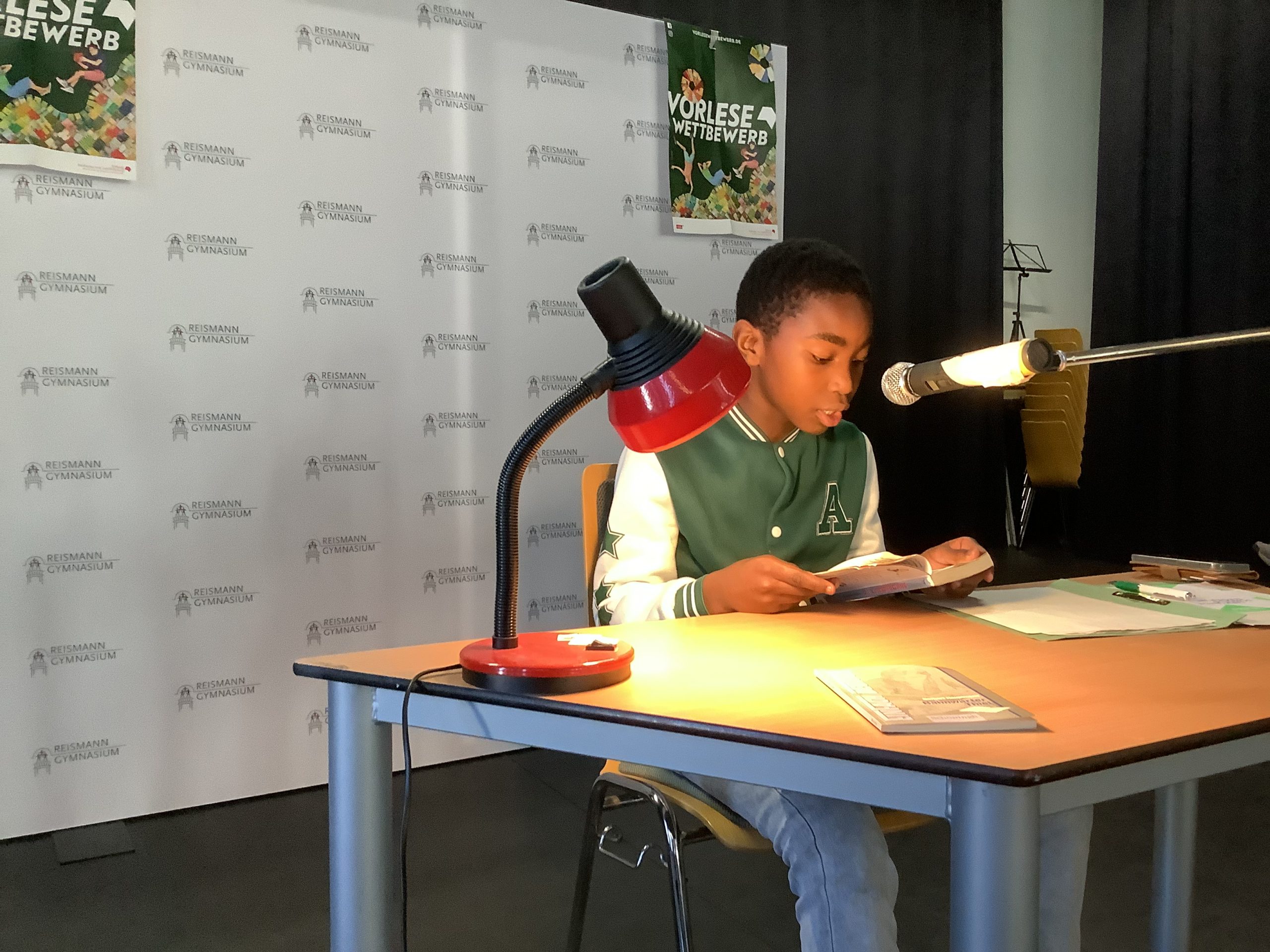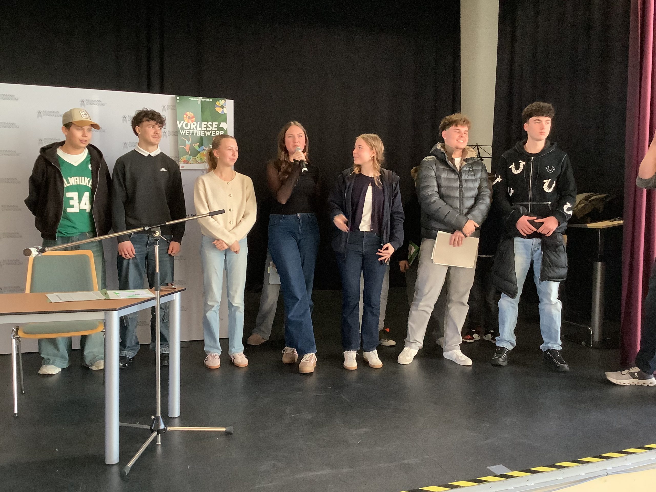 Angetreten sind zum diesjährigen Vorlesewettbewerb Deutsch Alan William Mabou Wafo, Adriana Talhof, David Schröder und Joschua Bender. Die Stimmung im Saal war ausgezeichnet und ein fesselnder Wettbewerb entfaltete sich vor einem gespannten Publikum. Schöne Geschichten wurden schön vorgelesen und alle gaben ihr Bestes. Aber! Es gibt nur einen ersten Platz und der ging an: Adriana Talhof. Sie bekommt den Hauptpreis von Frau Frensel-Kestner (Verein der Ehemaligen) und der Bücherei Linnemann, die den Wettbewerb tüchtig unterstützen!