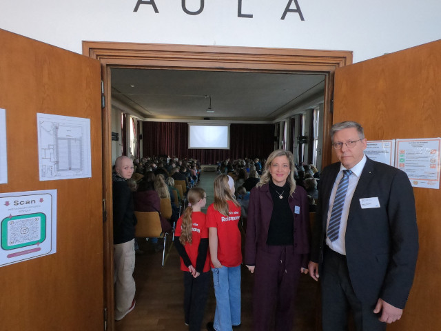 In zwei Vorträgen stellte Herr Rojahn in der Aula der Schule das Reismann-Gymnasium vor.