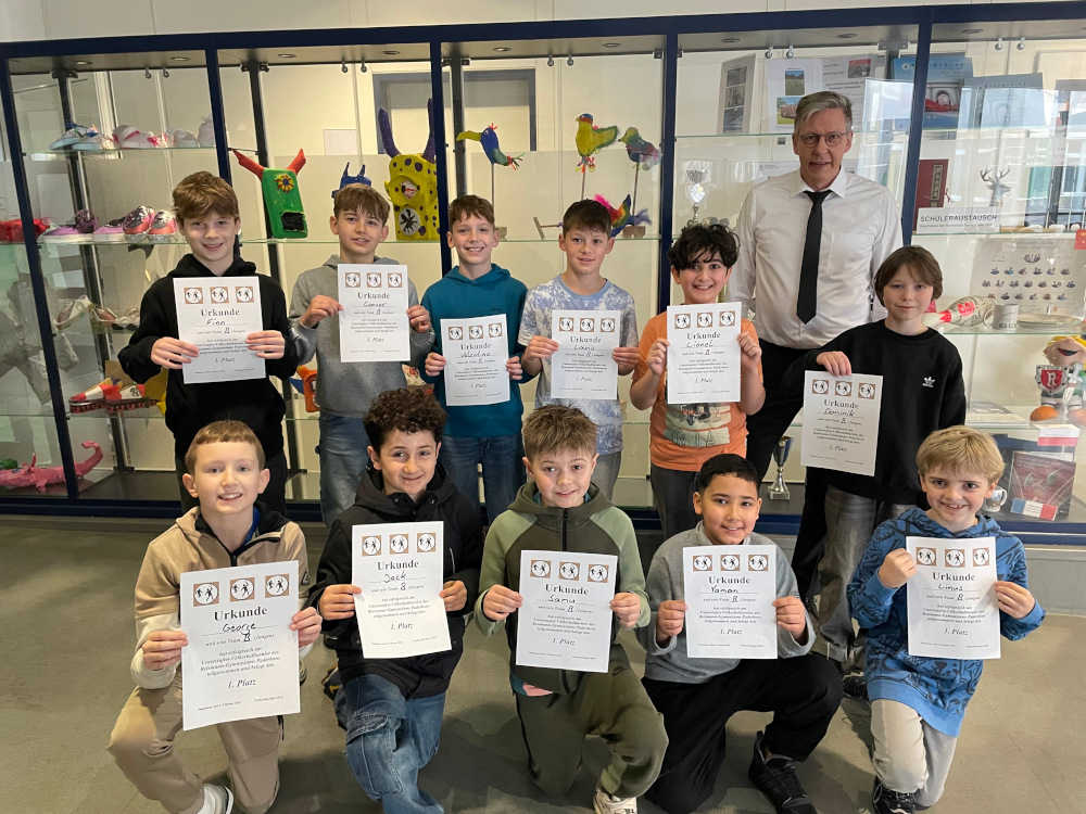 Die Siegerehrung fand durch den Schulleiter Herrn Rojahn und der Erprobungsstufenkoordinatoren Frau Loddenkemper statt. Die besten Mädchen- und Jungenteams erhielten eine Urkunde, während jede Klasse eine süße Überraschung erhielt.